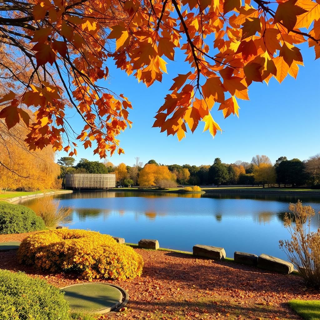 Centennial Parklands is a sprawling area that combines natural beauty with recreational facilities. As autumn sets in, the park showcases its stunning collection of trees, including oaks and maples, with leaves changing color beautifully.